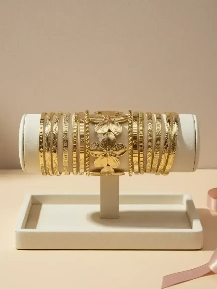 8 Pieces Hollow Floral and Bangle, Trendy Stack Bangle, Flower Design Bracelet, Bangle Bracelet Set, Elegant Women's Jewelry for All Seasons