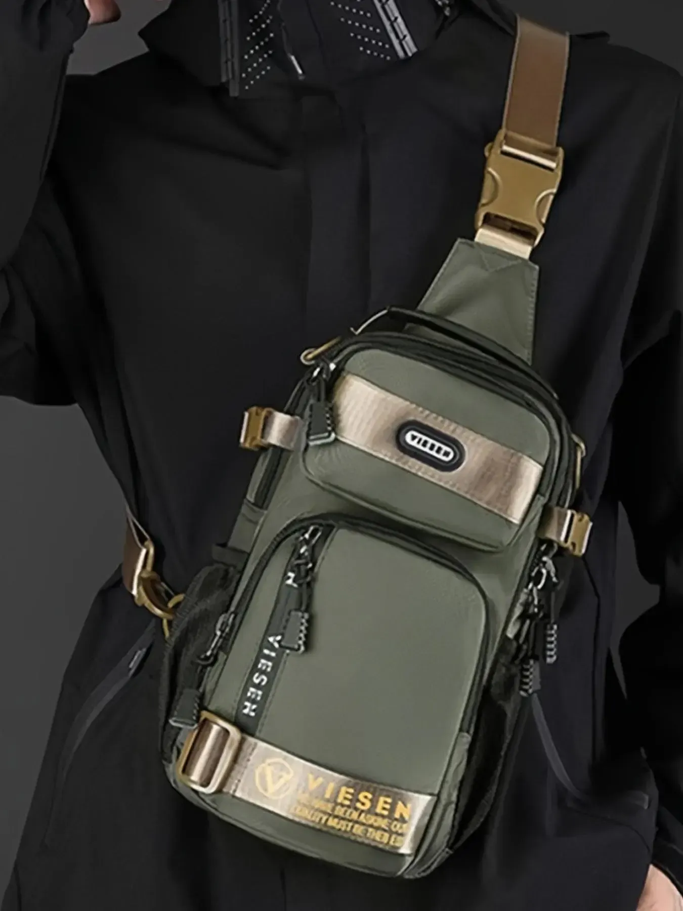 Men's Casual Letters Print Zipper Durable Chest Bag, Outdoor Casual Sports Sling Bag, Multi-functional Chest Bag, Fashionable Design Sling Bag for Men, Versatile Bag, Bum Bag, Gifts
