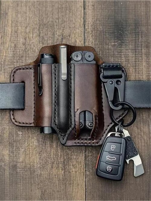 Men's Cowhide Solid Color Durable Belt Bag, EDC Tool Pouch, Multifunctional Storage Bag for Pen, Keychain, Flashlight, Tactical Pack