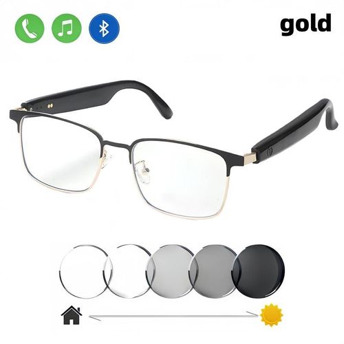 VUB Bluetooth audio smart glasses with photochromic lenses that darken in sunlight, metal frame, surround sound and Wireless microphone