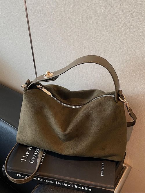 Women's Fall Winter New Suede Pillow Bag, Fashion Minimal Boston Shoulder Crossbody Bag, Elegant Commuter Bag, Suitable for Office, Commute, Shopping, Travel, Gym